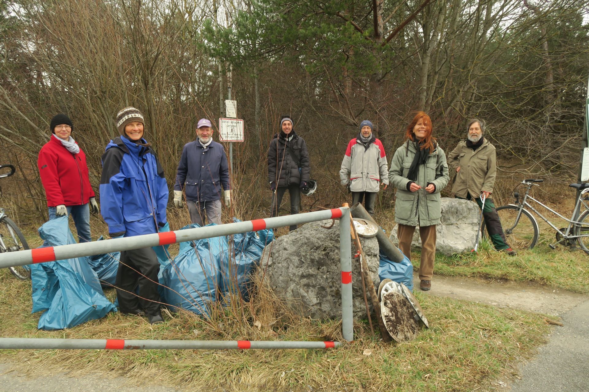 Wie jedes Jahr vor Beginn der Vogelbrutsaison im März zogen engagierte Naturfreunde von Bund Naturschutz, Ortsgruppe Schleißheim, und den beiden Schleißheimer Agenda-21-Gruppen zum Mallertshofer See und den angrenzenden Haiden. Auch dieses wunderschöne Naturschutzgebiet hält manche Menschen nicht davon ab, ihren Müll und Abfälle dort zu „vergessen“. Die ehrenamtlichen Helferinnen und Helfer beseitigten daher wieder mit Greifern und Handschuhen die z. T. ekligen und kuriosen Hinterlassenschaften. Dieses Jahr war dieser Einsatz für die 14 ehrenamtlich Helfenden mehr als nur ein Dienst für Natur und Landschaft: Er war Outdoor-Individualsport, Wellness, endlich wieder Vereinsleben, Kuriositäten-Museumsbesuch - und das alles höchst coronakonform mit großen Abständen, in Zweiergruppen und bei stürmischem Wind. Für folgenden rätselhaften Fund gibt es übrigens nach wie vor keine eindeutige Lösung: Warum kam eine Maus in eine halbvolle Sektflasche hinein, aber nicht mehr heraus? Lag es vielleicht am Alkohol? Nicht auf dem Bild: Fam. Spitzenberger und Fam. Eberl. Vielen Dank an die fleißigen Helferinnen und Helfer!