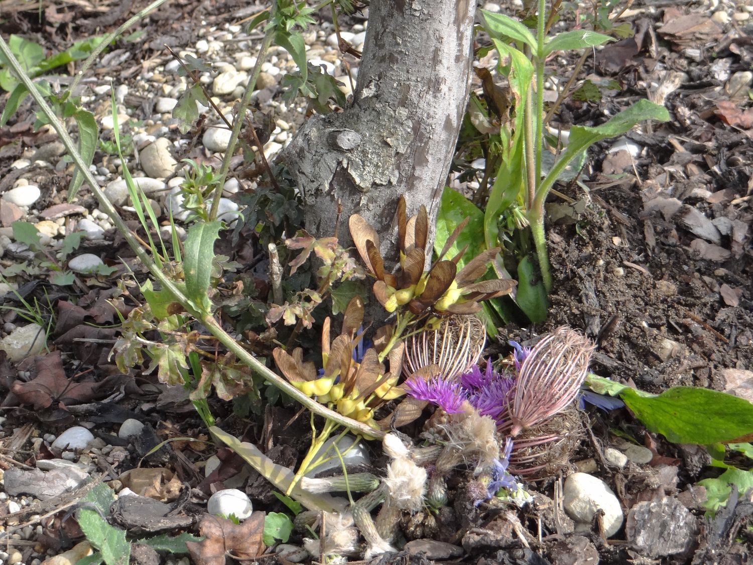 Zurück am Bauwagen wurden die gesammelten Früchte, Zapfen und Blätter genauer inspiziert und zu hübschen Bildern arragiert.