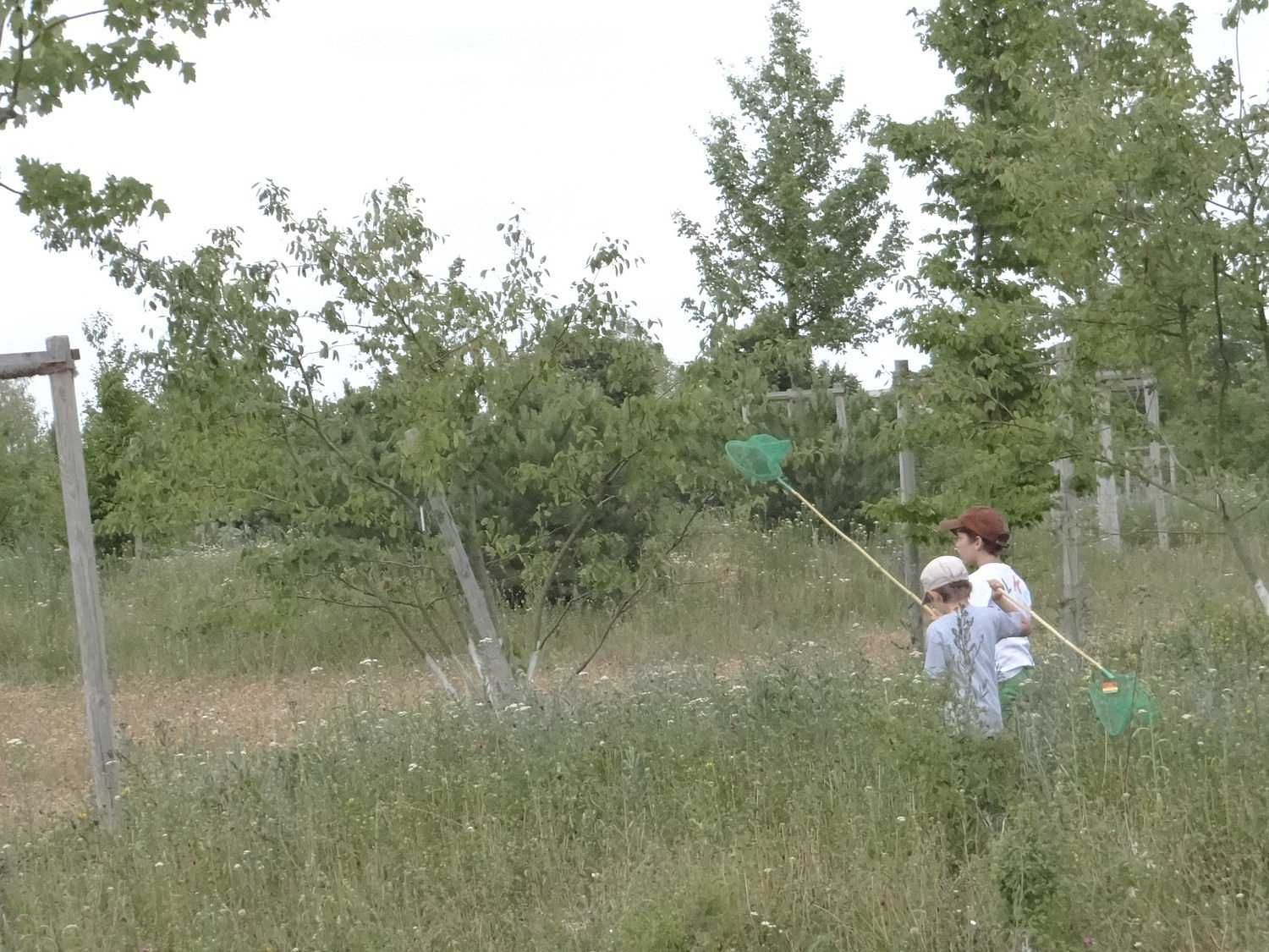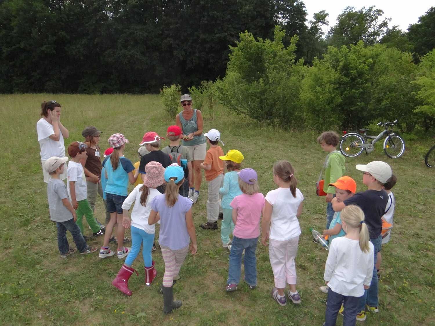 29.06.2014 - Unter dem Motto "Brummende Wiesen" sind wir erstmals mit Kescher und Becherlupen losgezogen. Mit großem Eifer sammelten die Kinder Käfer, Falter und Hummeln. Die größte Attraktion waren dabei sicherlich einige herumfliegende Schachbrettfalter. Sie brauchen blumenreiche, selten gemähte Wiesen. Zum Glück wurde unsere Wiese heuer noch nicht gemäht!