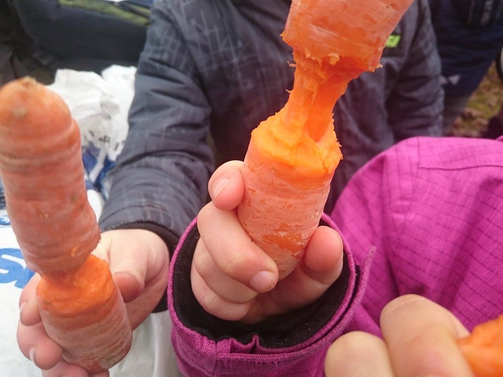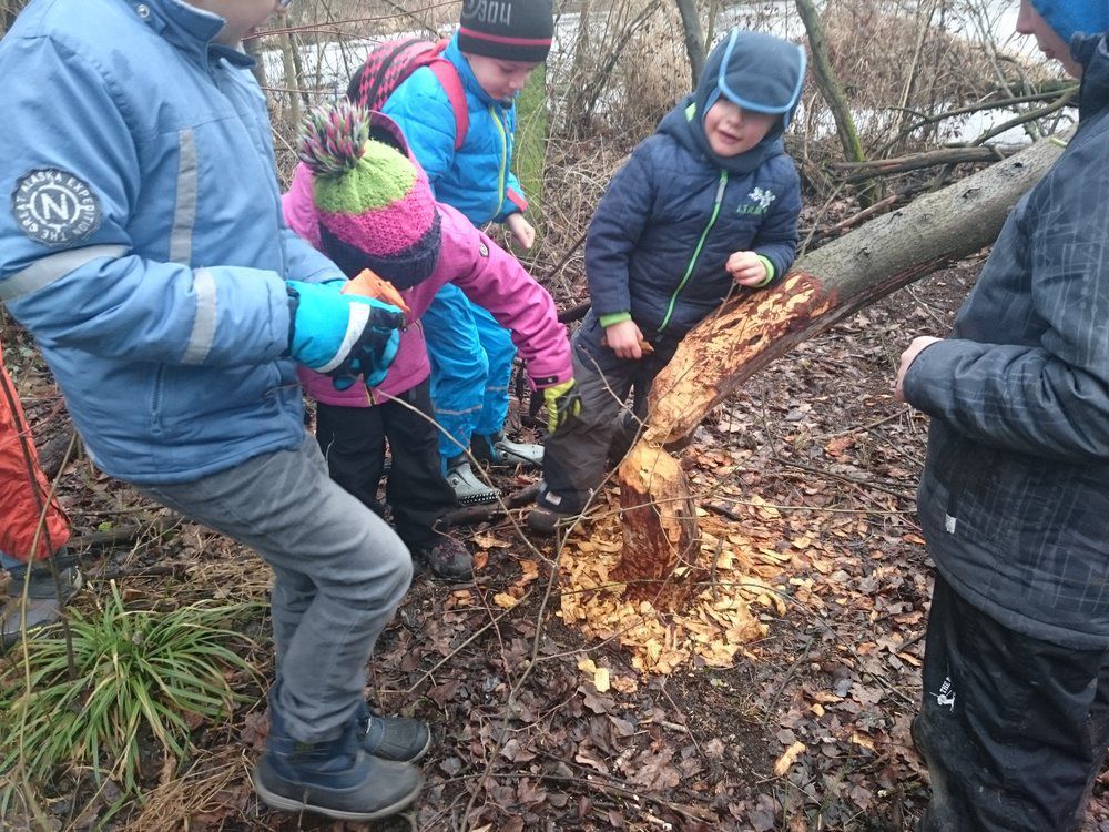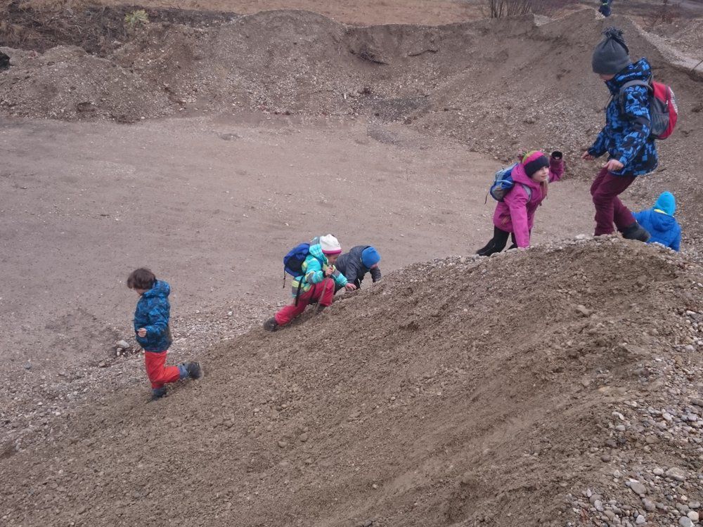 Bevor wir uns dann auf die Suche nach Nagespuren machten, versetzten wir uns in die Rolle des Bibers und nagten genüsslich Sanduhrformen in Karotten. Den Schluss des Ausflugs krönte eine spontane Kletterpartie an einem Kiesberg nach dem Motto "dreckig aber glücklich".