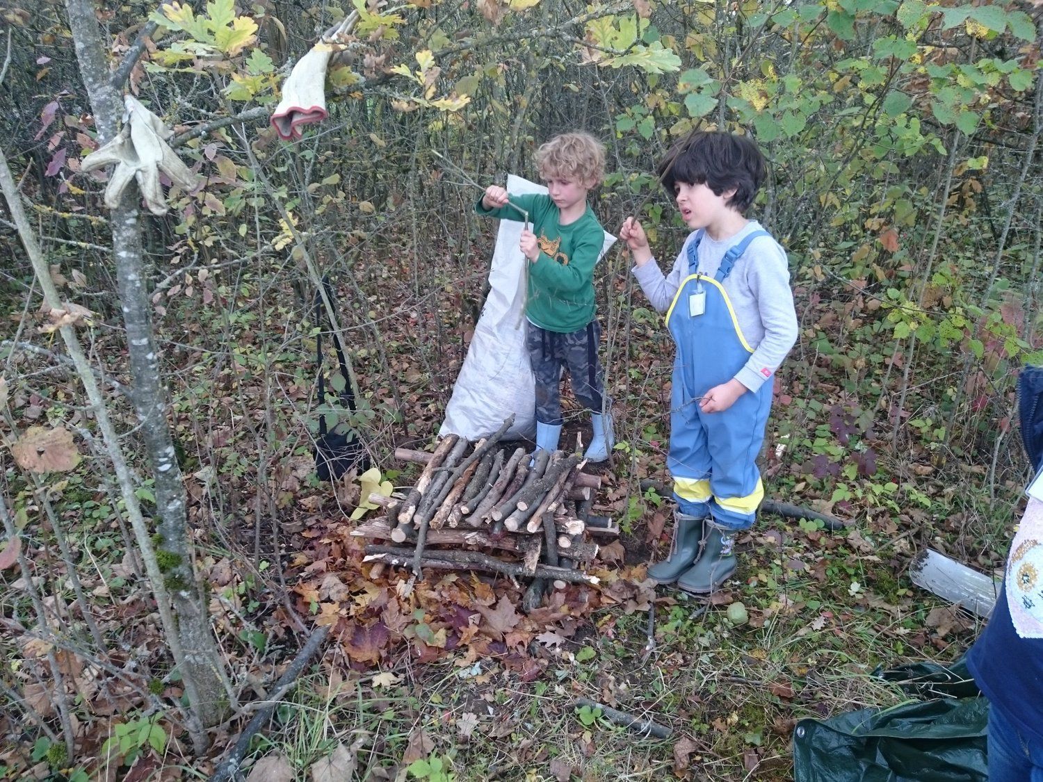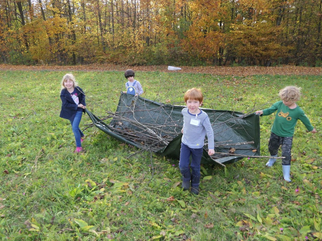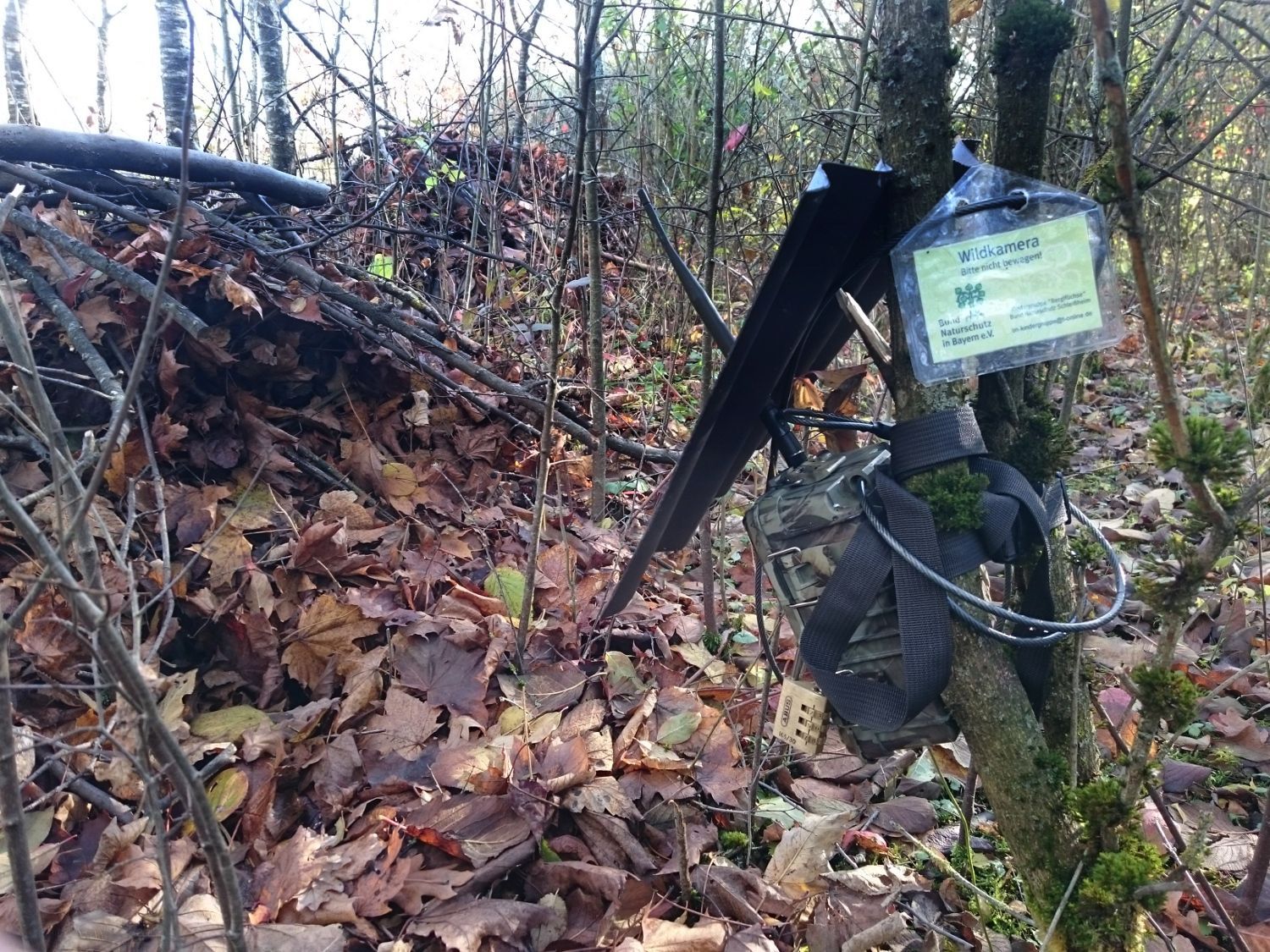 21.10.2017 - Bald machen sich die Igel wieder auf Quartiersuche für den Winter. Glücklich, wer dabei auf ein fertiges Haus stößt! Wir sind darum - wie schon vorletztes Jahr - losgezogen, und sammelten Material um daraus kleine Blockhütten zu bauen. Großes handwerkliches Geschick bewiesen dabei nicht nur unsere Mädels vom Sägewerk, sondern auch die Mitarbeiter aus der Konstruktionsabteilung. Mit Unmengen Laub und Zweigen wurden die Hütten winterfest isoliert. Ob die Igelhütten tatsächlich bezogen werden, wird uns hoffentlich demnächst die Wildkamera verraten, die am Eingang einer der Hütten lauert.