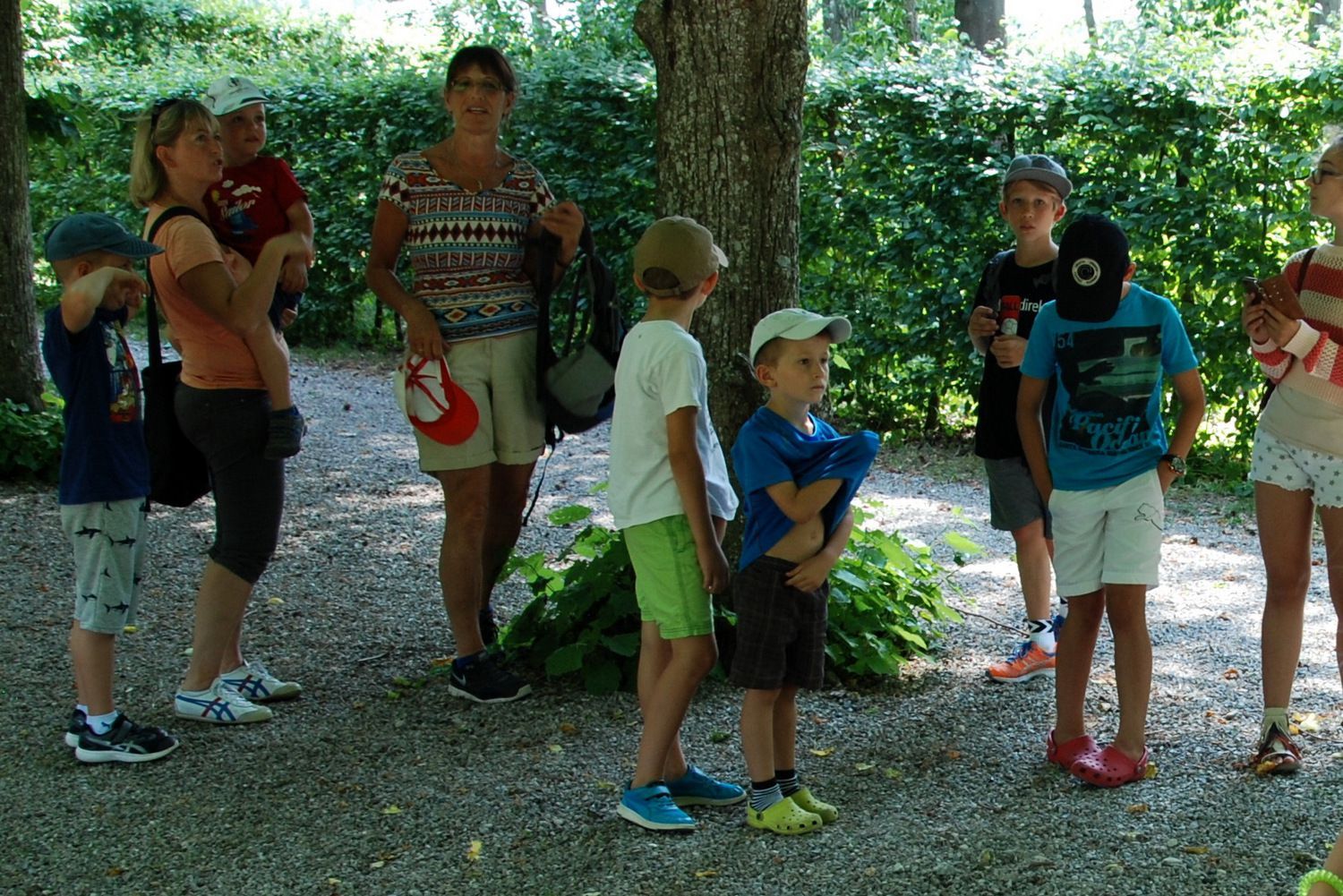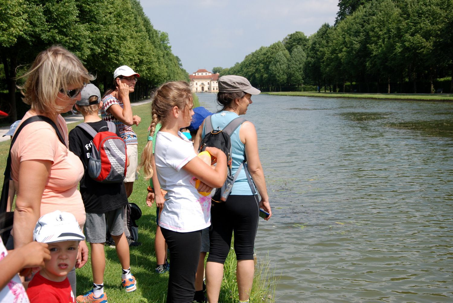 24.6.2017 Diesmal unternahmen wir einen sommerlichen Ausflug in den Schleißheimer Schlosspark. Einer unserer Papas ist dort für die Gartenanlagen zuständig. Da kennt er sich aus wie sonst niemand und zeigte uns viele geheime und weniger geheime Ecken und Schätze wie den schönen alten Obstgarten, die blühenden Barock-Gärten vor dem Schloss, eine alte Linde mit Herz im Stamm und die Graskarpfen im Mittelkanal. Eine Erfrischung im Wasserschleier der riesigen Fontäne durfte auch nicht fehlen ...