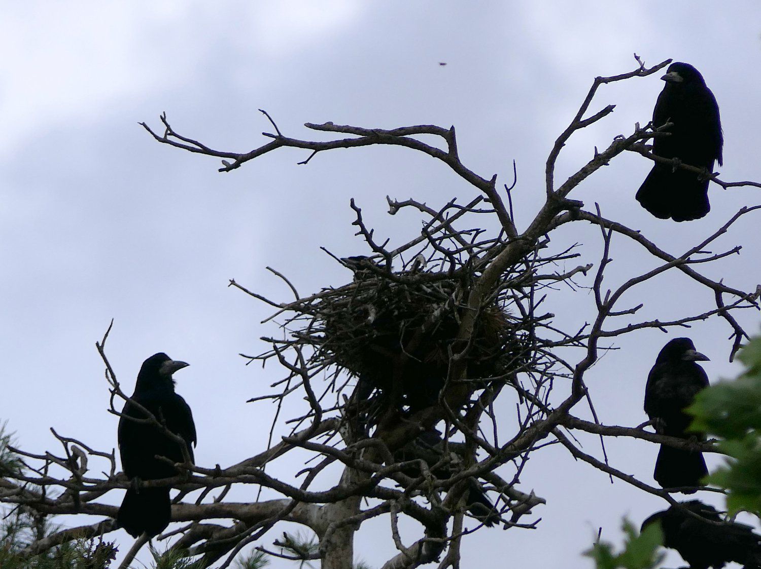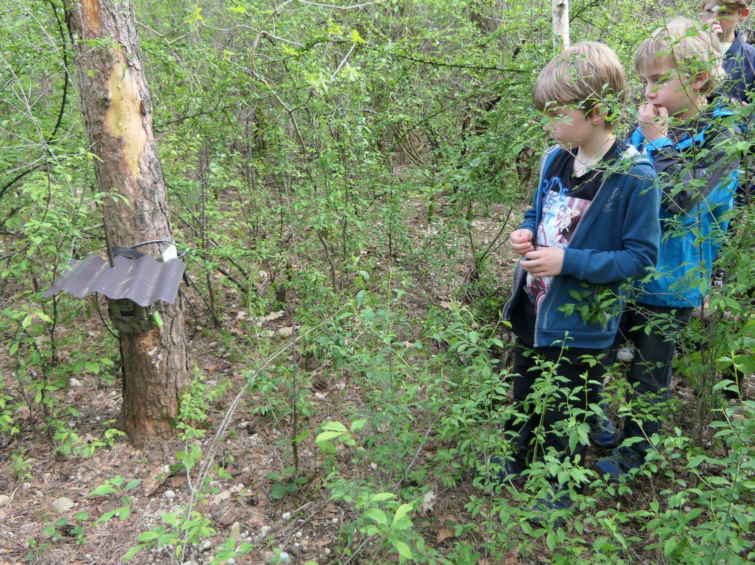Ein Abstecher führte uns zu unserer Wildkamera, die den Dachsbau inzwischen als Kaninchenbau entlarvt hat. Zum Abschluss besuchten wir noch die weithin hörbare Krähenkolonie und beobachteten mit Ferngläsern die Nester in den Baumwipfeln.