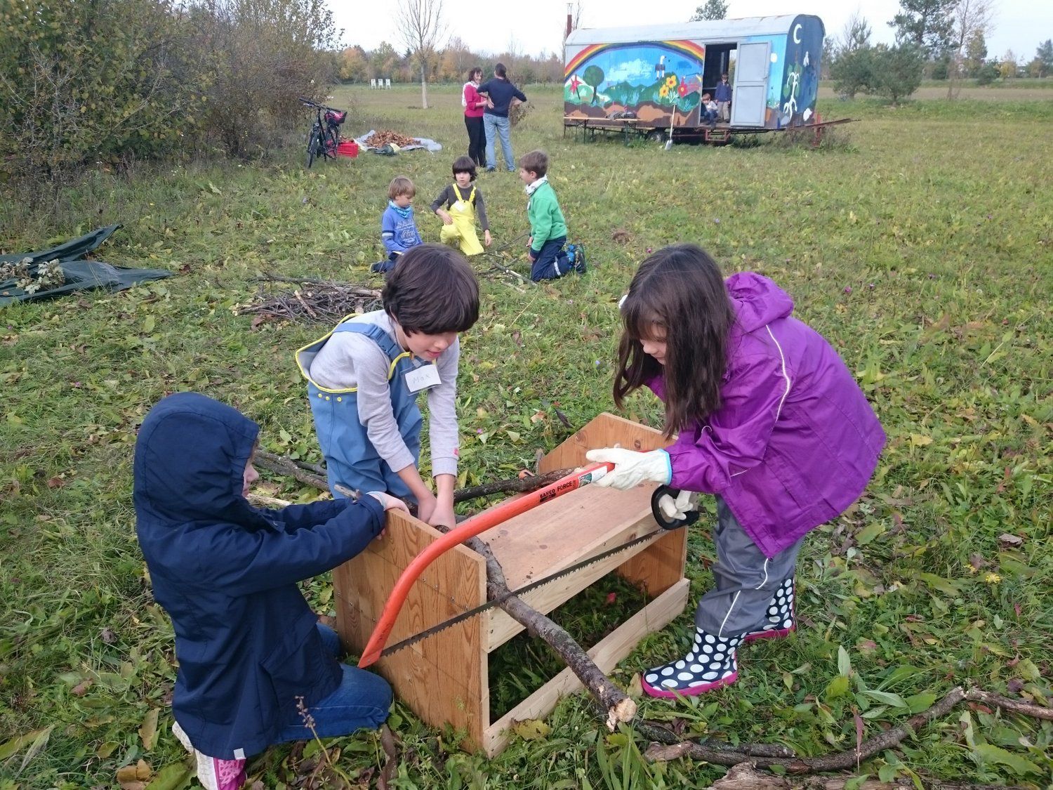 25.03.2017 - Auch wenn es noch recht kühl ist: Tiere und Pflanzen machen sich schon bereit fürs große Keinem und Bauen. Auf der Wiese ist davon noch nichts zu spüren. Das ließen sich die Berglfüchse nicht entgehen! Wo sonst gibt es so viel Platz zum Spielen und Toben. Anschließend inspizierten wir wieder einmal die Waldhäuser vom letzten Frühjahr, besuchten einen vermeintlichen Dachsbau und pflanzten Frühlingszwiebeln für zuhause.
