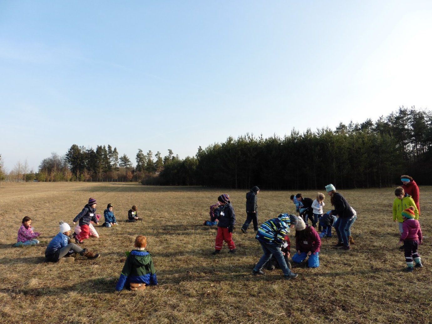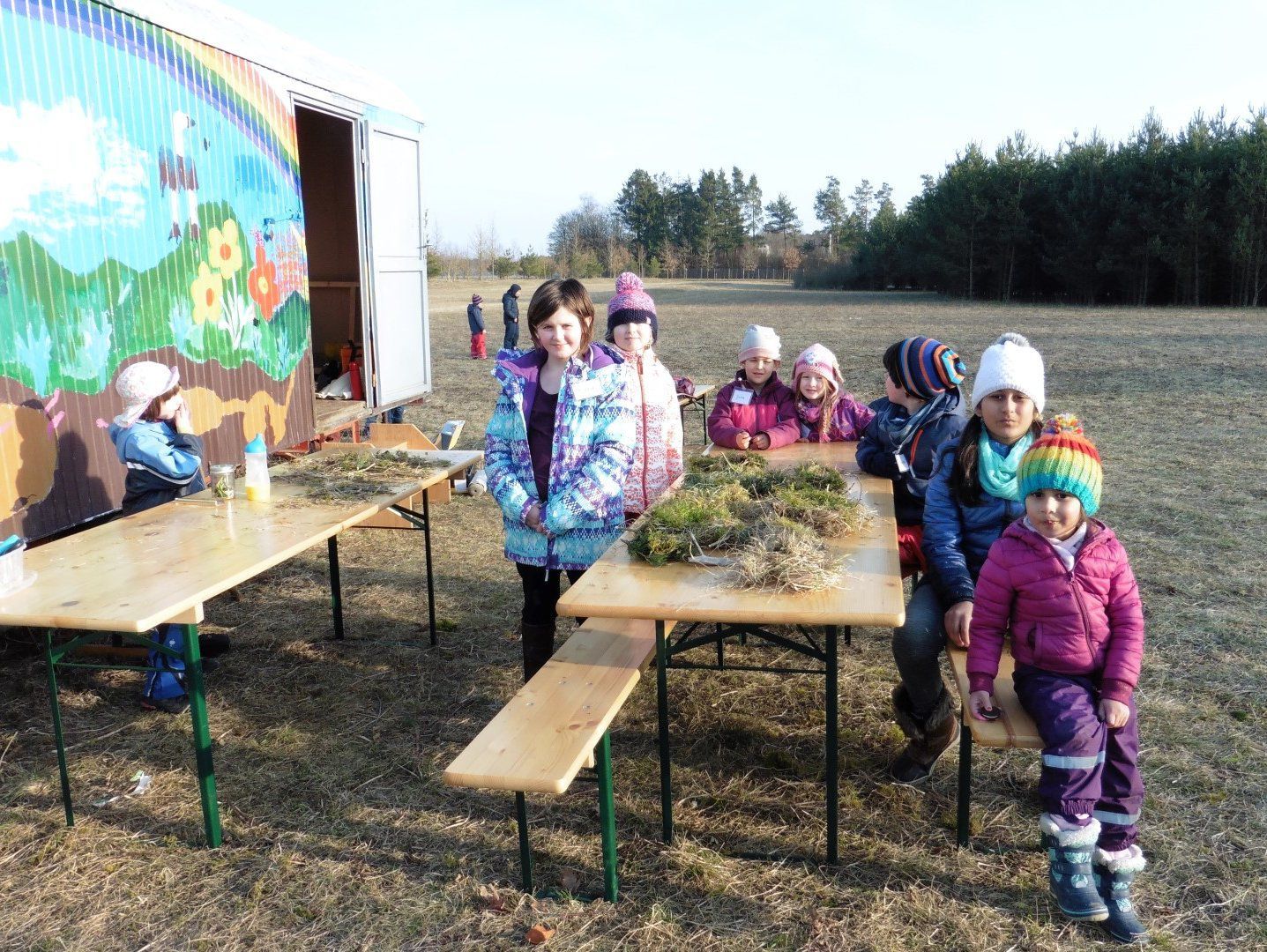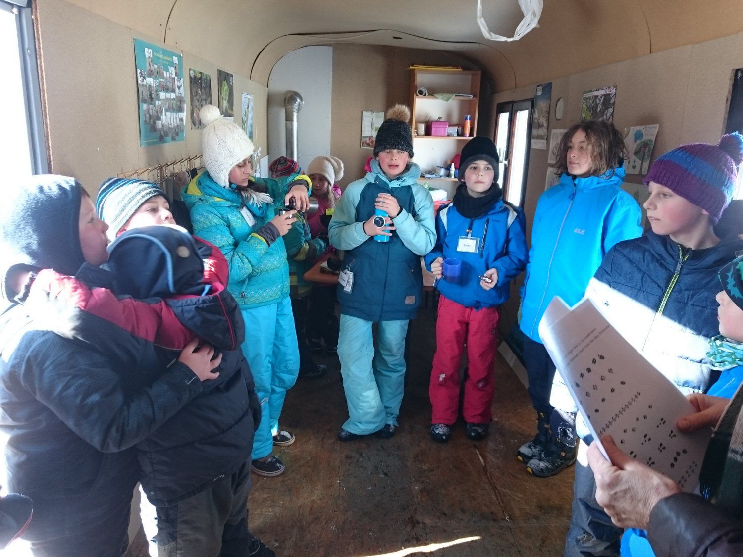 24.02.2018 - Schnee ist nicht nur in den Bergen ein Erlebnis. Bei klirrender Kälte und steifem Ostwind gab es diesmal eine Planen-Rallye: Zwei Teams traten an, bestimmten jeweils ein Kind als Jockey auf der Plane und galoppierten los. Im geheizten Bauwagen tranken wir heißen Tee und bastelten Schneeflocken aus Papier. Die unerschrockensten Forscher trotzten der Kälte aber noch weiter und bewunderten die Vielfalt der Schneekristalle unterm Mikroskop.