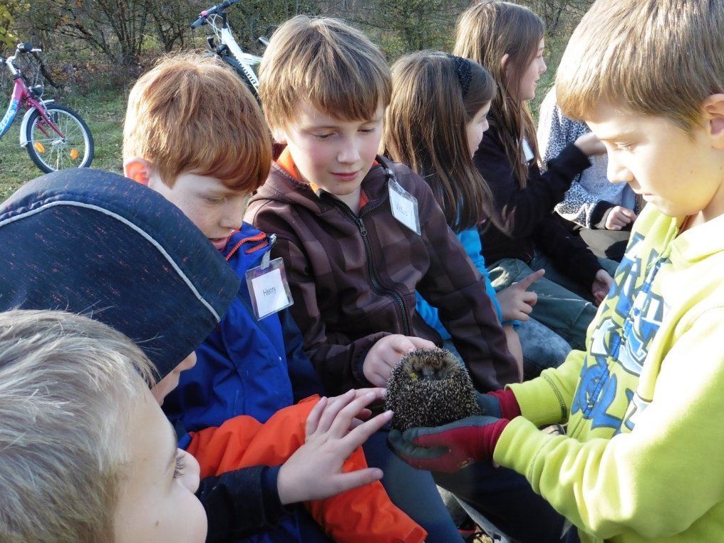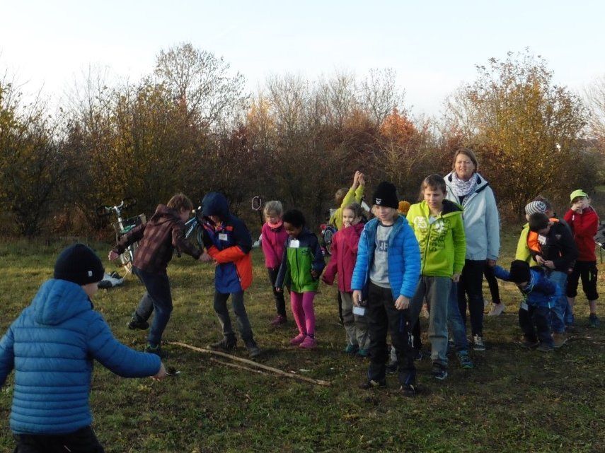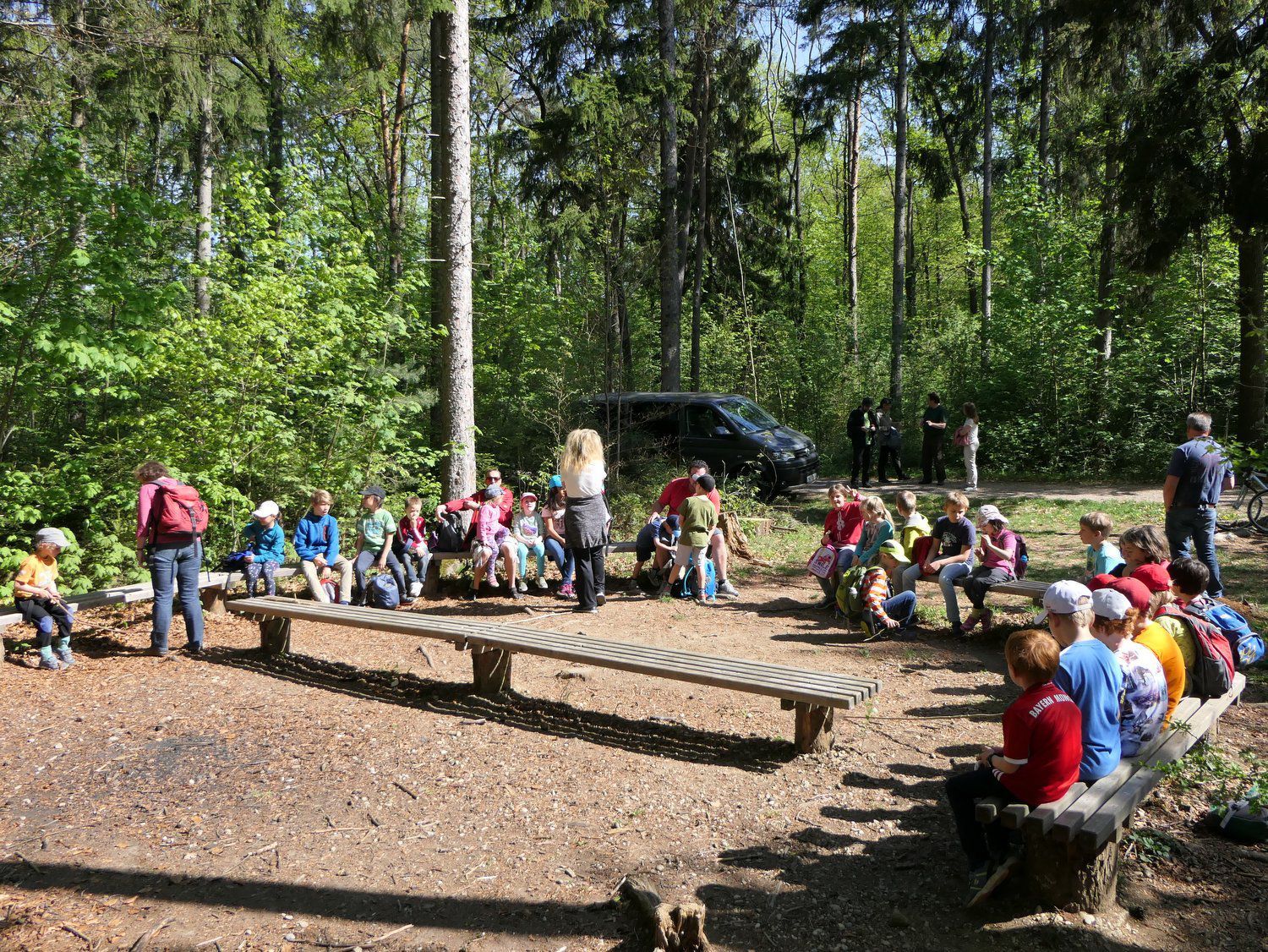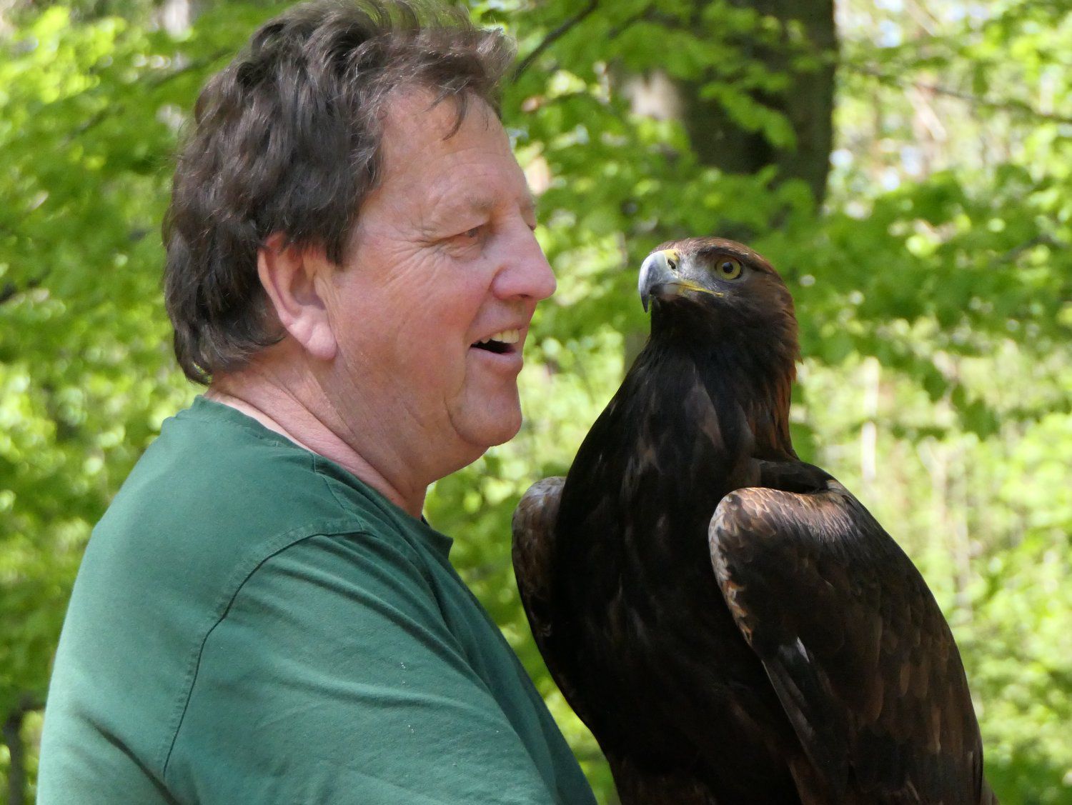 28.04.2018 - Einen spannenden Vormittag hatten wir diesmal mit dem Falkner Wolfgang Schreyer aus Unterschleißheim. Er kennt Greifvögel und ihre Lebensweise wie kaum ein anderer in Bayern und ist intensiv in der Umweltbildung aktiv. Im Berglwald hat er dazu eigens ein grünes Klassenzimmer eingerichtet. Von dort aus ging's zunächst auf Schnitzeljagd, bei der wir typische Waldtiere erraten mussten. Dazu hatte Herr Schreyer in der Nähe des Wegs lebensecht ausgestopfte Tierbälge mehr oder weniger gut versteckt, darunter ein Fuchs, ein Wildschwein, ein Feldhase und andere mehr. Am eindrucksvollsten waren freilich die stolzen Greifvögel. Gut erzogen und gut mit Hühnerbeinen gefüttert ließen sie alles mögliche mit sich machen...