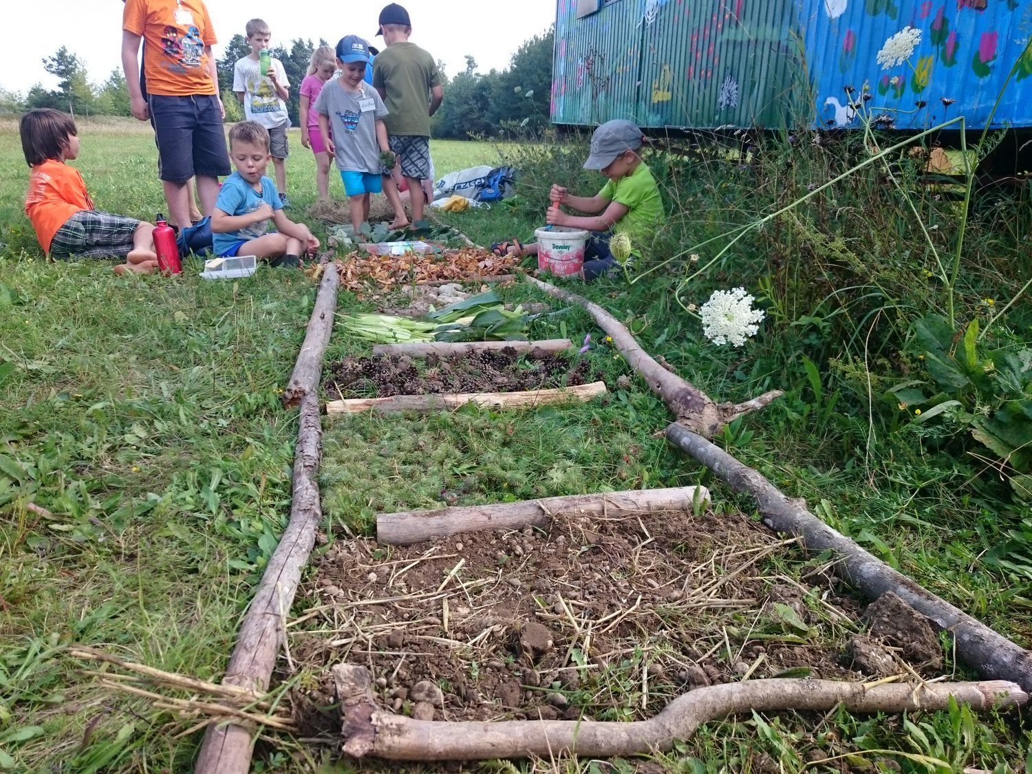 Einige von uns machten dann auf dem sommerheißen Acker Jagd nach Kartoffelkäfern, während die anderen in der kühlen Garage Traumfänger aus Naturmaterialen bastelten.