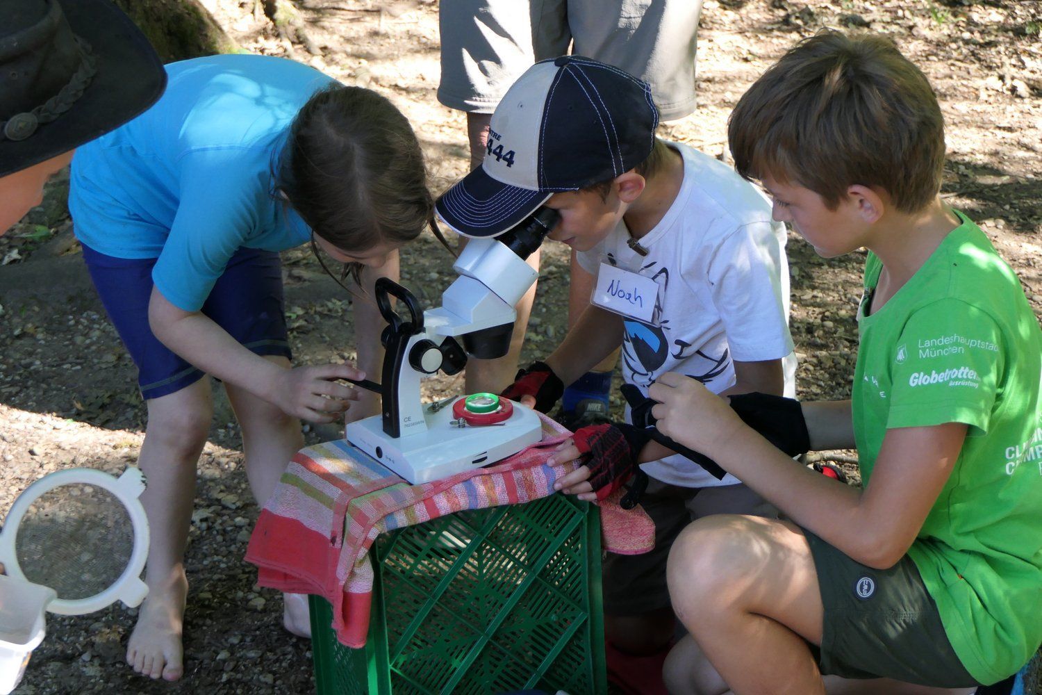 29.06.2019 - Das tolle Pfingstwetter lockt nicht nur Schmetterlinge oder Libellen an Luft, Sonne und Wasser, sondern auch die Berglfüchse. Die übrigens überhaupt nicht wasserscheu sind. Darum haben wir wieder einmal den beliebten Bachlauf unternommen. Diesmal gut ausgestattet mit Schnur, um aus Ästchen und Blättern Flöße zu bauen. Damit gings dann in den gar nicht so kalten Fluten bachabwärts zur kleinen Steinbrücke. Dort stöberten wir ein paar der unscheinbaren Bachbewohner auf, um sie unterm mobilen Mikroskop näher zu beobachten - etwa die Köcherfliegenlarve, die sich mit einem Mantel aus Sandkörnchen beschwert, um nicht mit der Strömung abgetrieben zu werden.