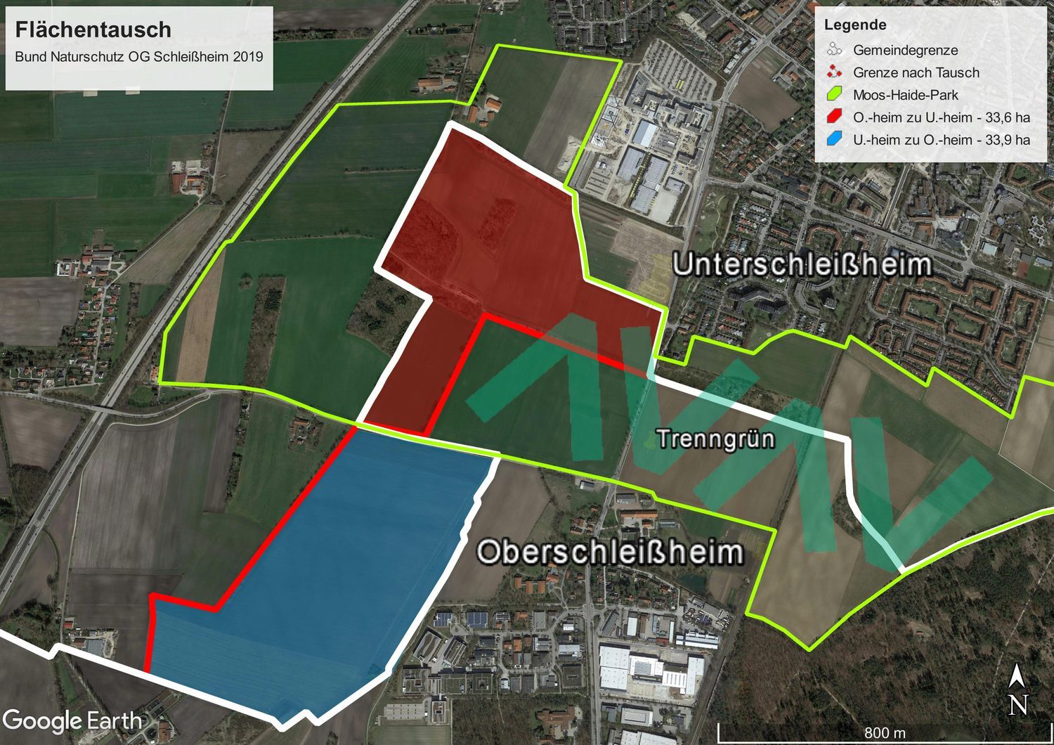 Historisch bedingt wird das betreffende Oberschleißheimer Areal von Unterschleißheimer Flur fast vollständig umschlossen. Ein Gewerbegebiet an dieser Stelle wäre eine Exklave und komplett vom Oberschleißheimer Siedlungsraum abgekoppelt. Die freien Wähler Oberschleißheim schlugen deshalb schon vor Jahren einen Flächentausch vor. Die Idee scheiterte an den – damals – berechtigten Bedenken vor allem der SPD gegenüber dem ausufernden Wachstumskurs Unterschleißheims: Man wolle „kein Gewerbegebiet von Mittenheim bis Maisteig“.